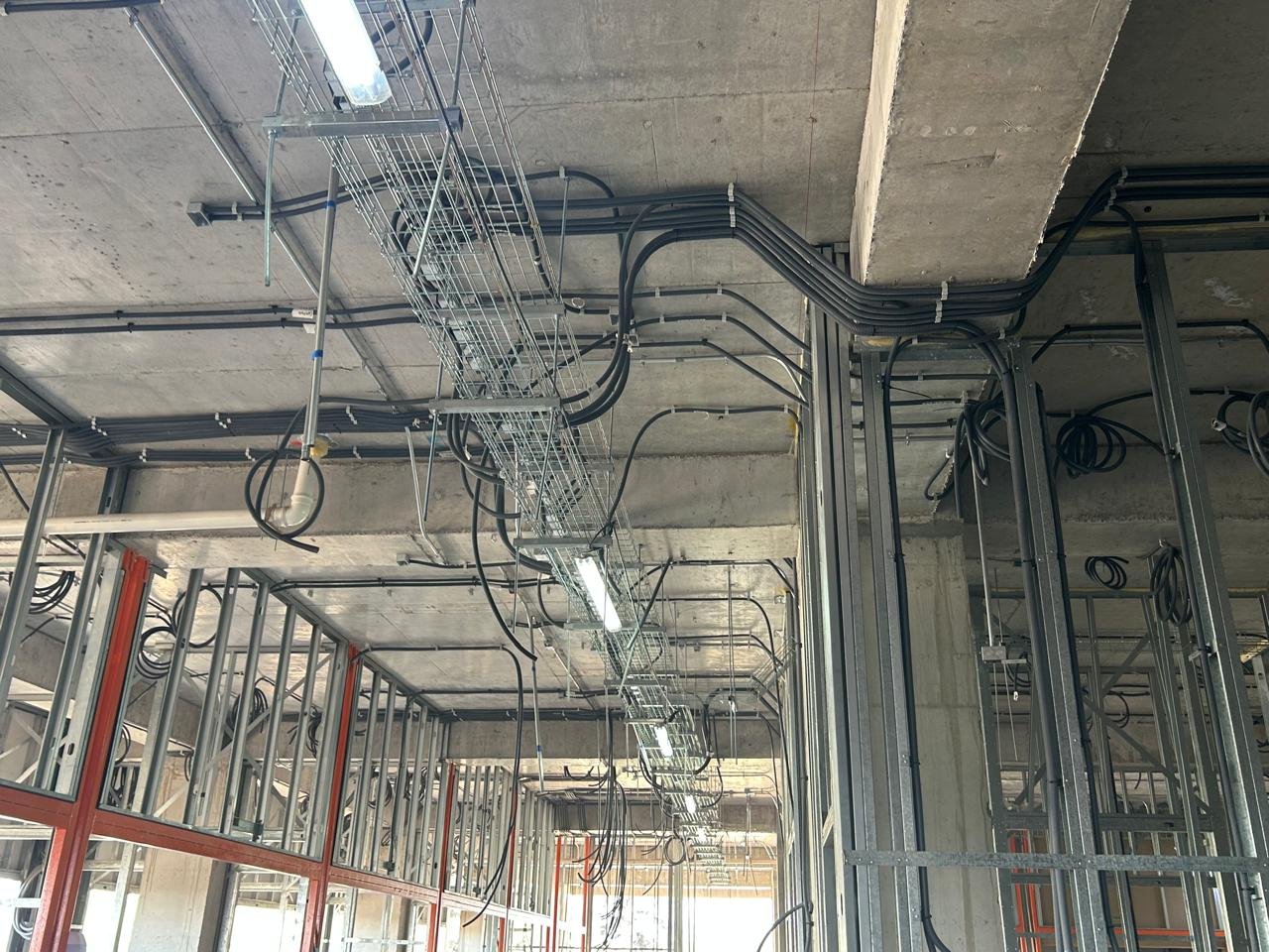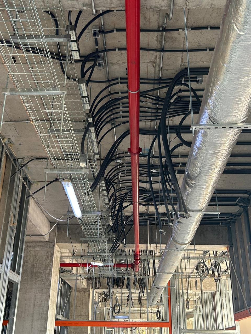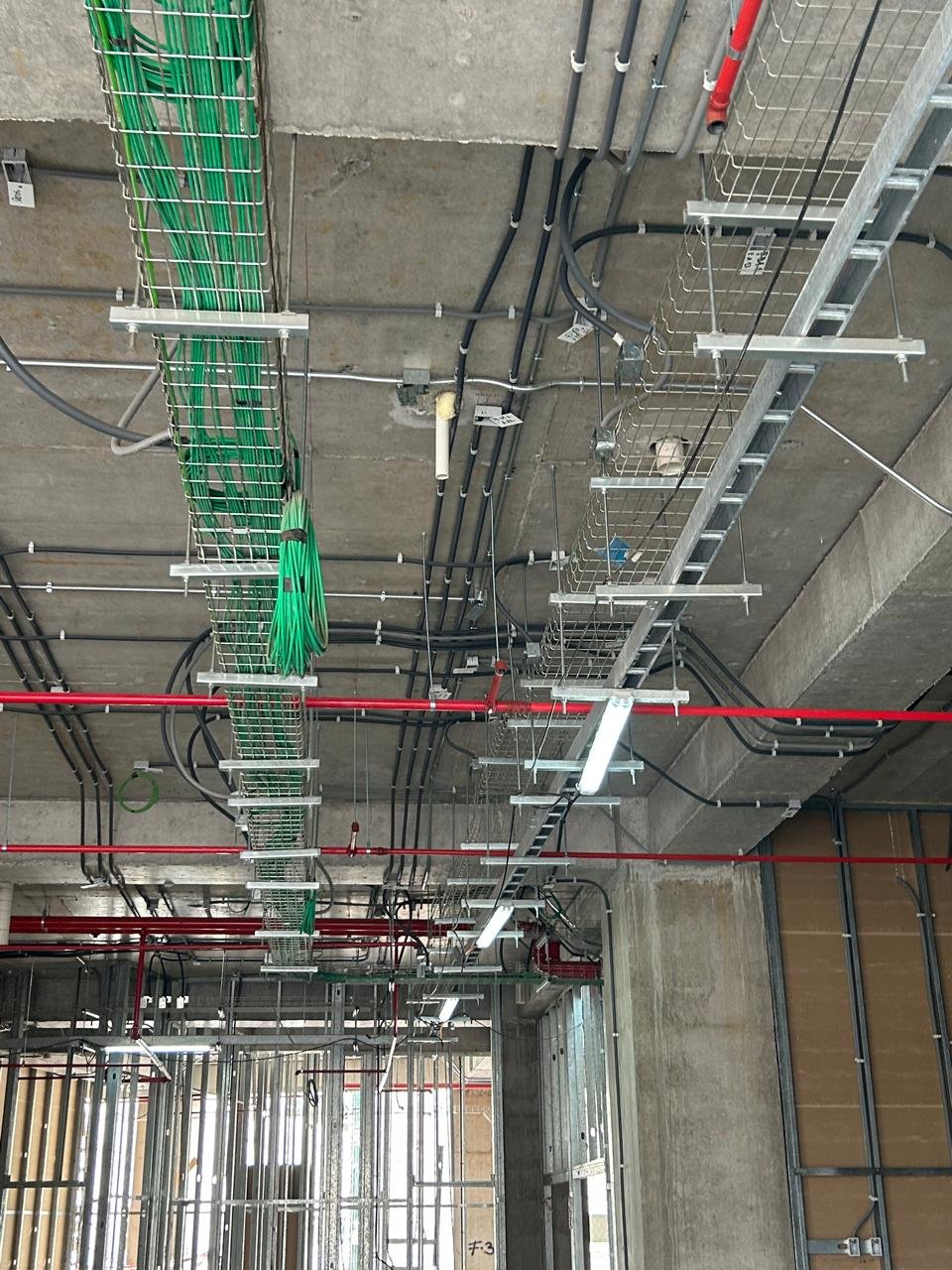 4. Sistemas de Corrientes Débiles (CCTV, Voz/Datos, Seguridad) Instalación de circuito cerrado de TV (CCTV), control de accesos y alarmas. Cableado estructurado para telefonía, datos y fibra óptica. Sistemas de detección de incendios e intrusión.